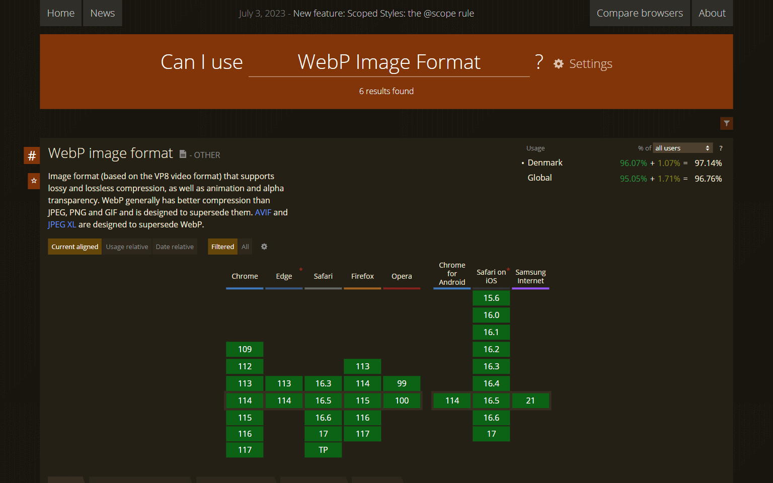 De fleste fotos bruges blot til illustration eller dekoration og er forhåbentligt altid skaleret ned i en størrelse, der passer til layoutet, og altid komprimeret i en eller anden grad. Er det afgørende, at et foto er til rådighed i fuld opløsning, f.eks. på et foto site som Unsplash, er der en særlig download knap til formålet. En let øget komprimering eller konvertering til WebP, bliver næppe bemærket af den besøgende – det skulle da kun være fordi, at sitet indlæses hurtigere.